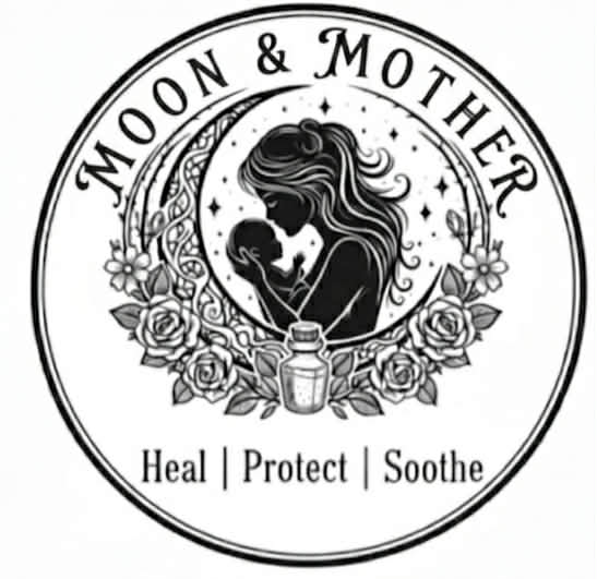 Mother and Moon Logo; Mother, Child, & Crescent Moon